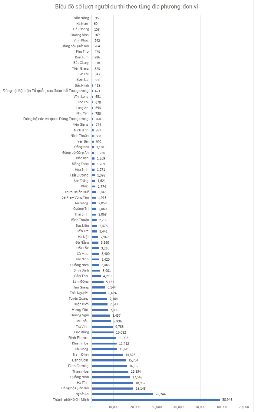 – Thống kê số lượt dự thi theo từng địa phương, đơn vị cụ thể như sau: